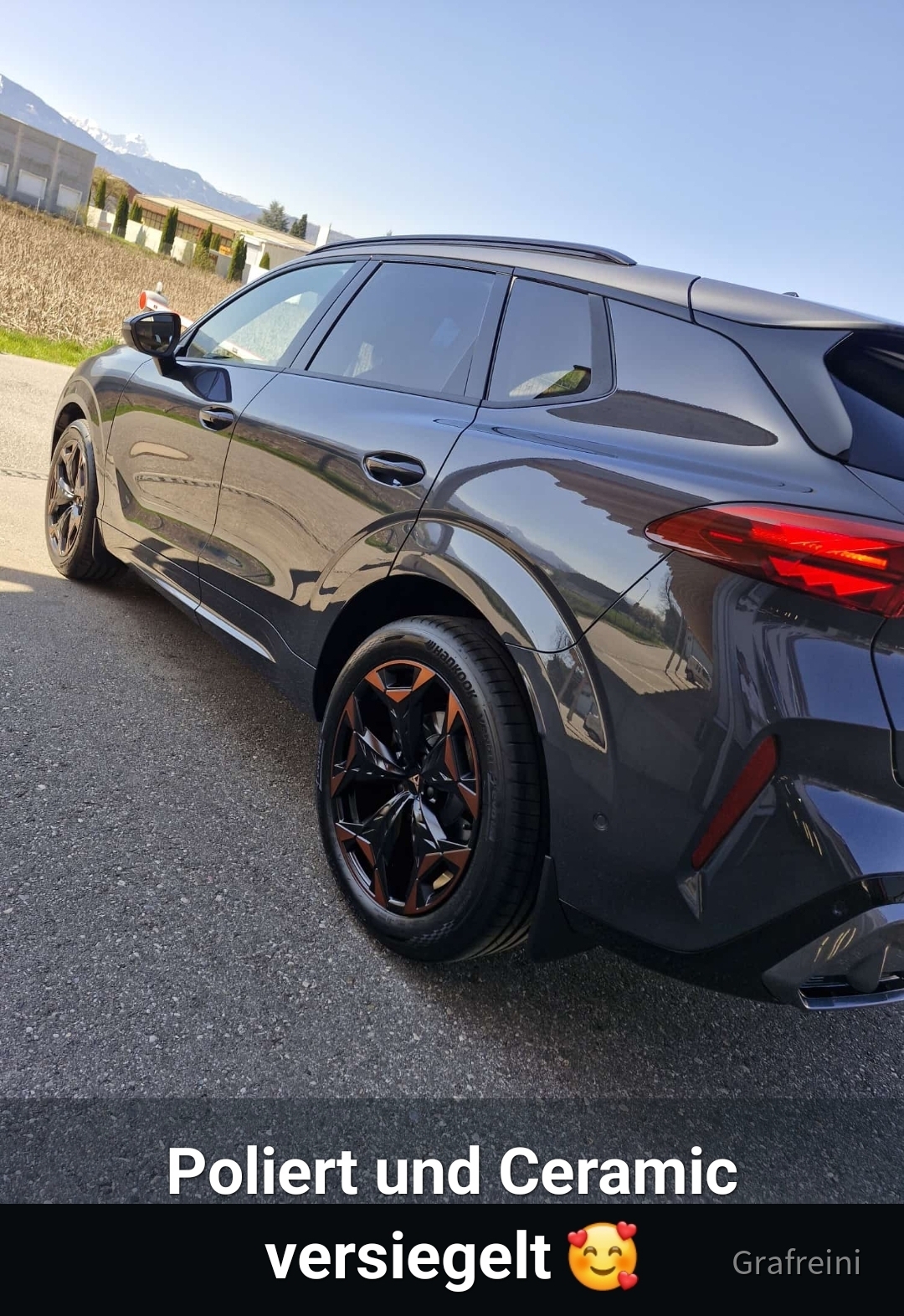 Jetzt ist er außen und innen geschützt. Lack und Felgen wurden mit einer keramischen Beschichtung versiegelt. Außerdem wurden alle Scheiben und Außenspiegel versiegelt. Innen wurden die Kunststoffteile gepflegt und alles was aus Leder oder Kunstleder ist wie die Seitenwänden der Sitze oder Mittelarmlehne wurden ebenfalls versiegelt. Jetzt steht er da wie von mir gewünscht :winking_face::smiling_face_with_sunglasses: