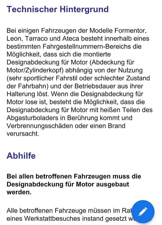Einen Musterbrief ist schon zu finden, den Seat Deutschland verschicken wird. Dort findet sich folgender Satz: