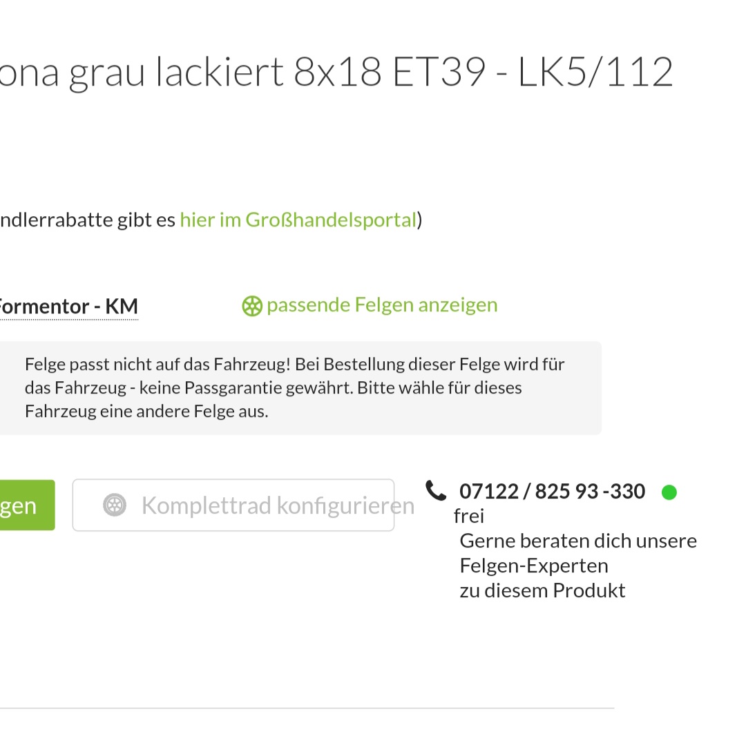 Na Gott sei Dank wurden zwei meiner Bestellungen storniert, weil sie die Felgen scheinbar nicht verfügbar hatten.