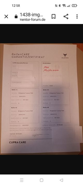 Hast du das Reifen CARE Garantiezertifikat von deinem Händler aus gestellt bekommen?