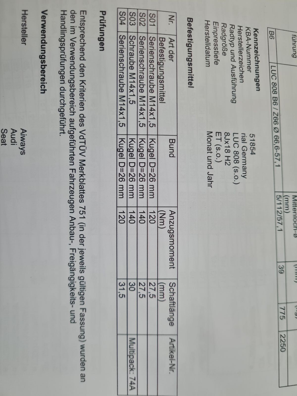 Und nein, es ist keine gute Idee Felgen mit Kegelbund mit Kugelbundschrauben zu befestigen. Das kann böse enden.