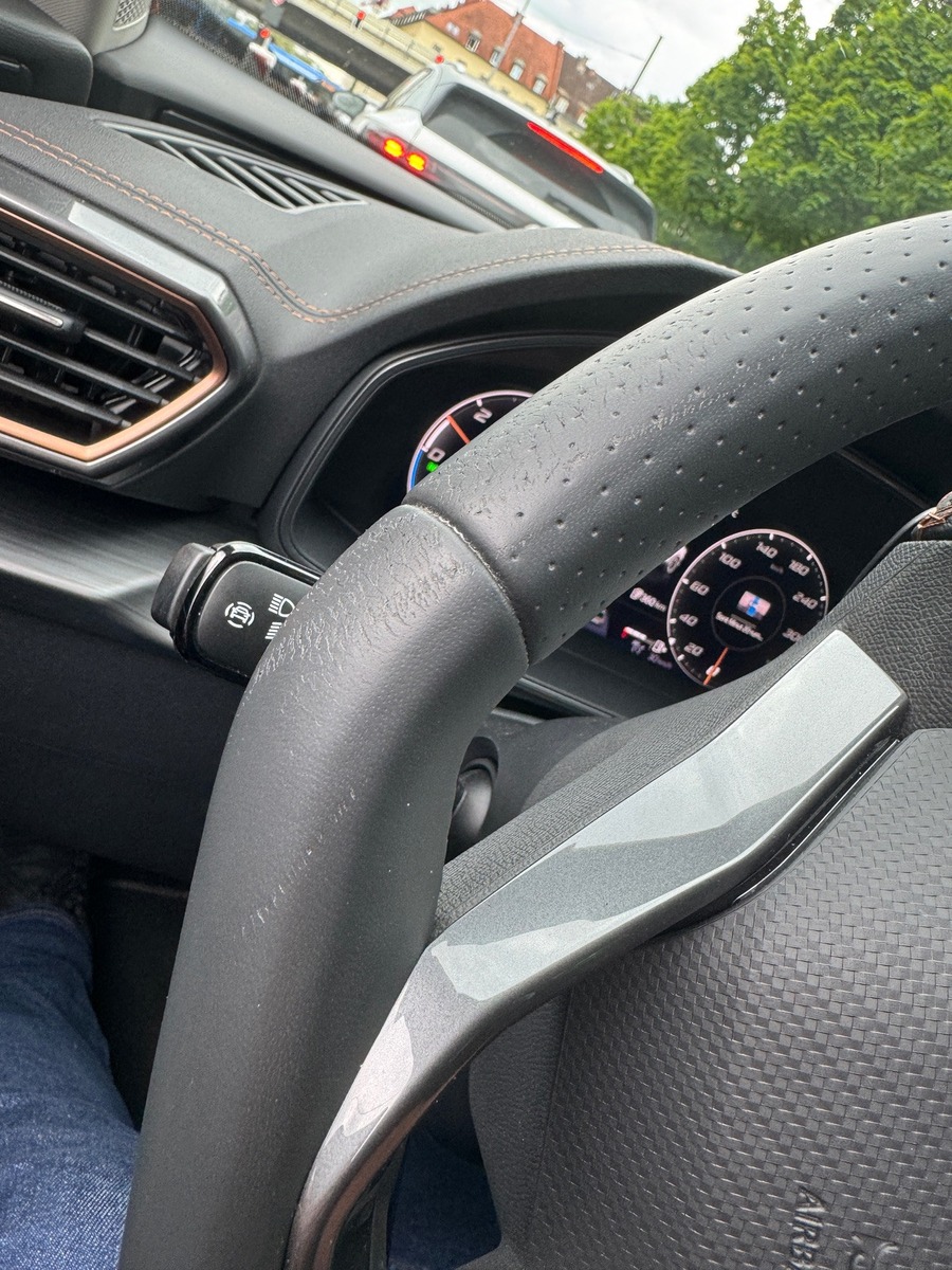 mein lenkrad sieht noch wie neu aus. Ich fahre immer mit t shirt im auto . Auch im winter. Ich schüttel nur den Kopf wenn mir leute entgegen kommen mit kompletter winter montur .