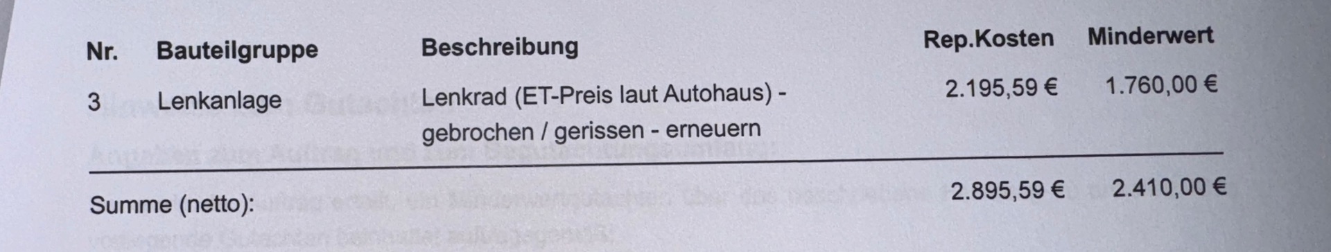 Also wenn das Lenkrad so aussieht wie auf dem Bild und mir so eine Rechnung gestellt wird würde ich sowas von in Wiederstand gehen.