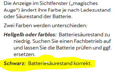 Bei der Batterie ist das magische Auge schwarz, das Auto springt noch ganz normal an. Wie ist das bei euch?