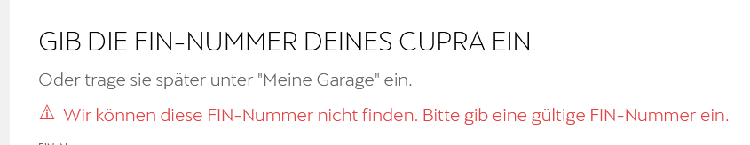 FIN seit 02/23 erhalten und in der Garage/App eingefügt.