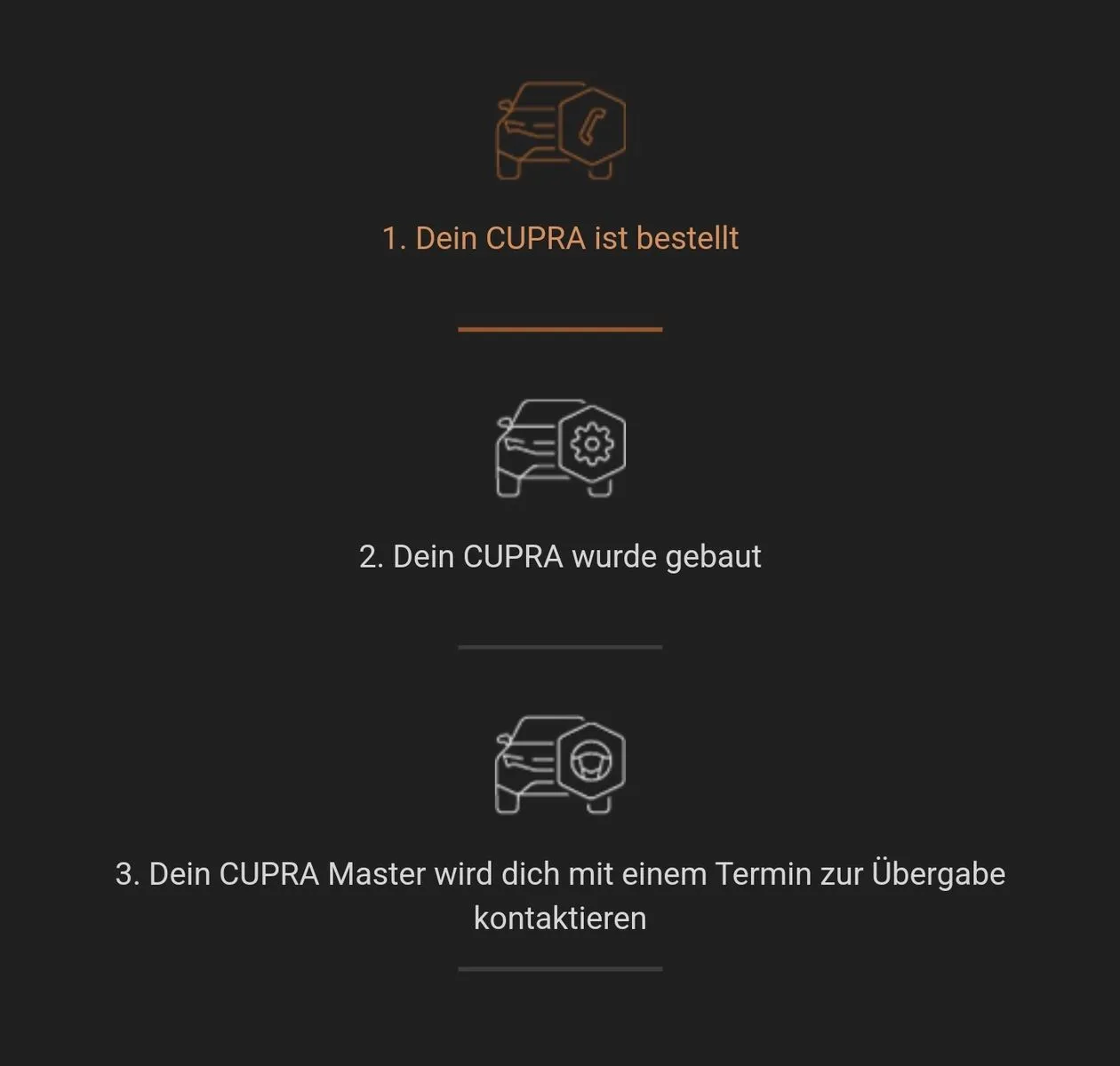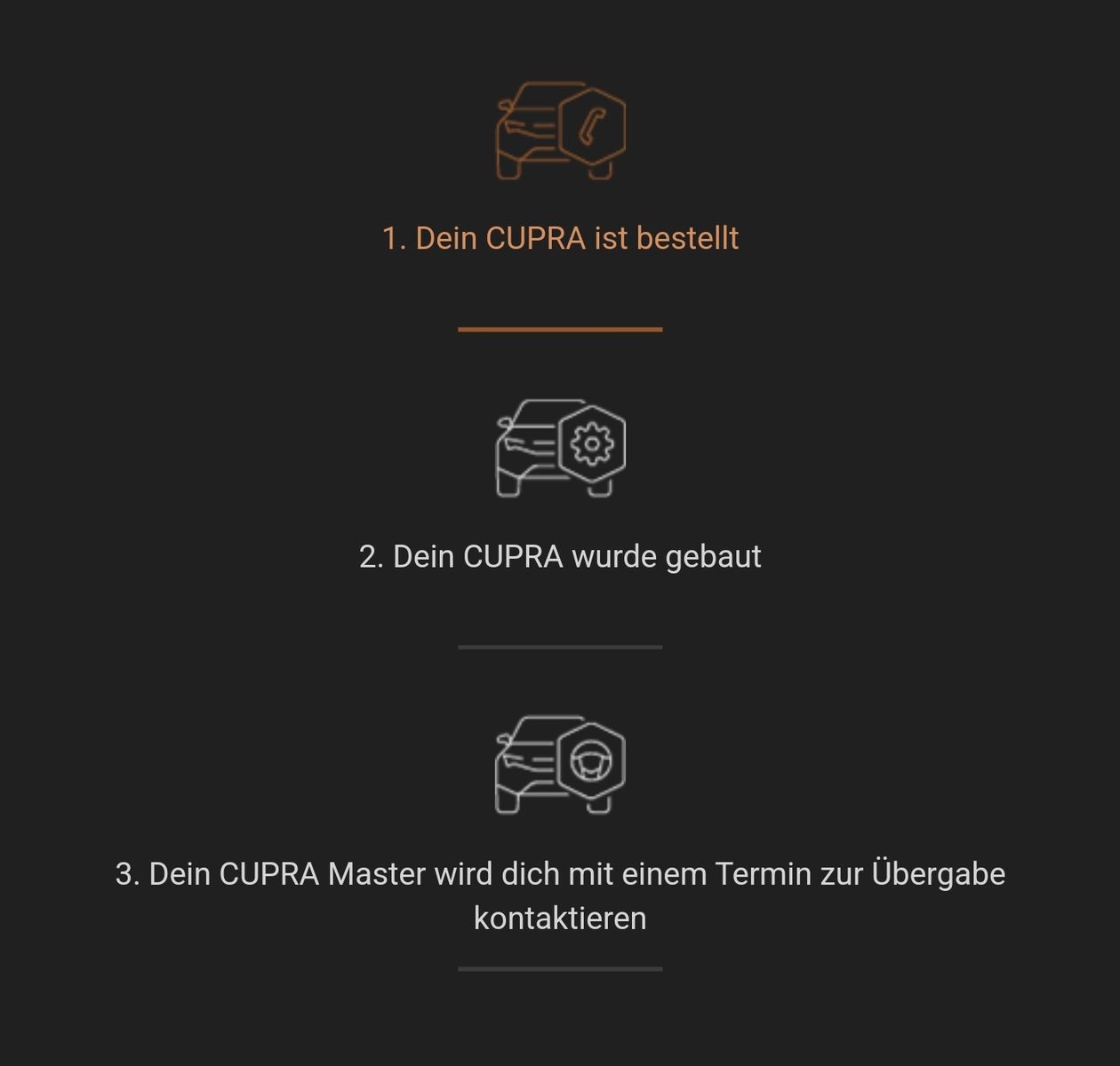 VZ 310 bestellt 09/2022 Midnight Schwarz 19"Exclusive I Black/Copper Beats Cupra Pedalerie Connect Box elek Fahrersitz Heckklappe elek Matrix LED Cupra Sharp Textil + Care Wartung und Verschleiß