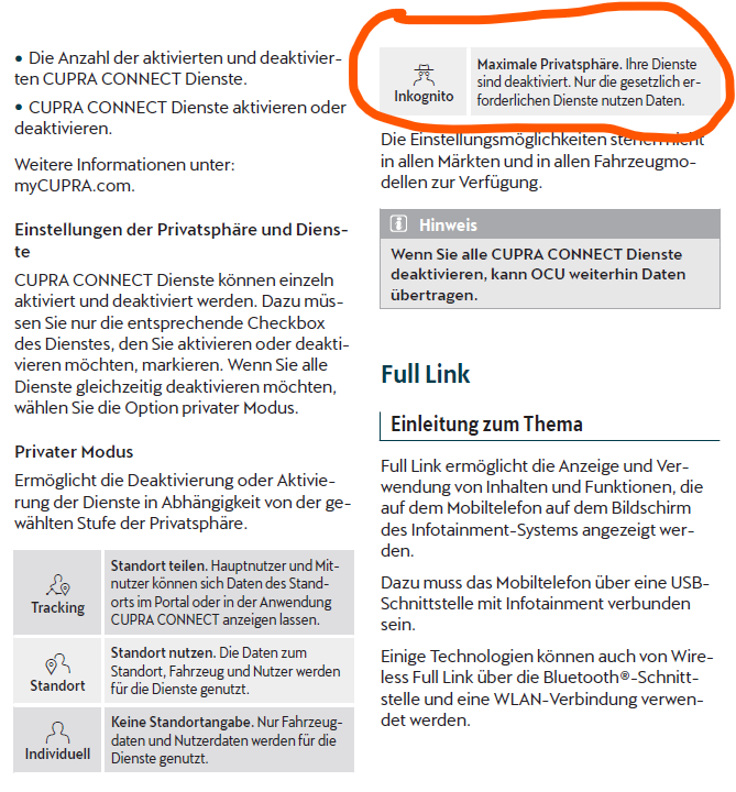 Ich hatte wärend der Werkstattzeit einen Leihwagen, einen Formentor Diesel. Der hatte die max. Privatsphäre eingestellt und trotzdem funktionierte die Temperatureinstellung wie ich das erwarten würde. Es wurde jederzeit die aktuelle Temperatur gespeichert.