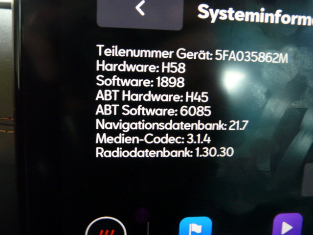 Übrigens hat sich nach einem automatischen Update nur der Stand der Navi-Datenbank auf 22.12 geändert. Der Softwarestand blieb bei 1898.