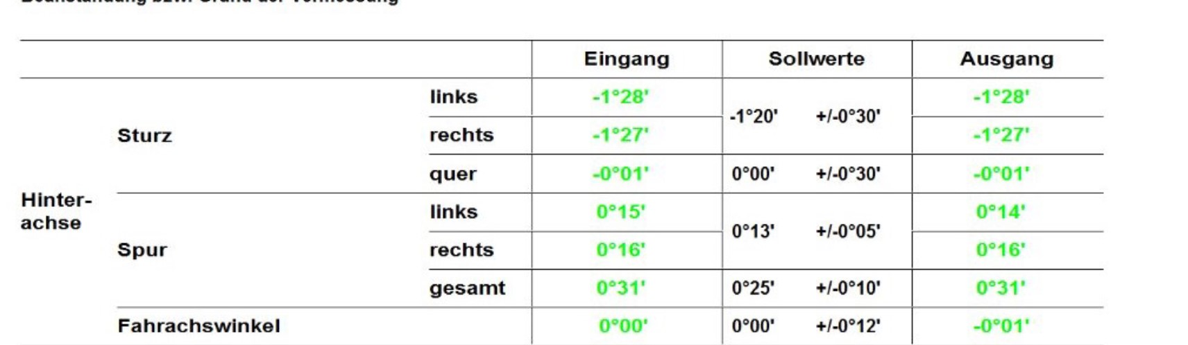 • Ist-Spur hinten: rechts ‬0° ‪10', links ‬0° ‪10'