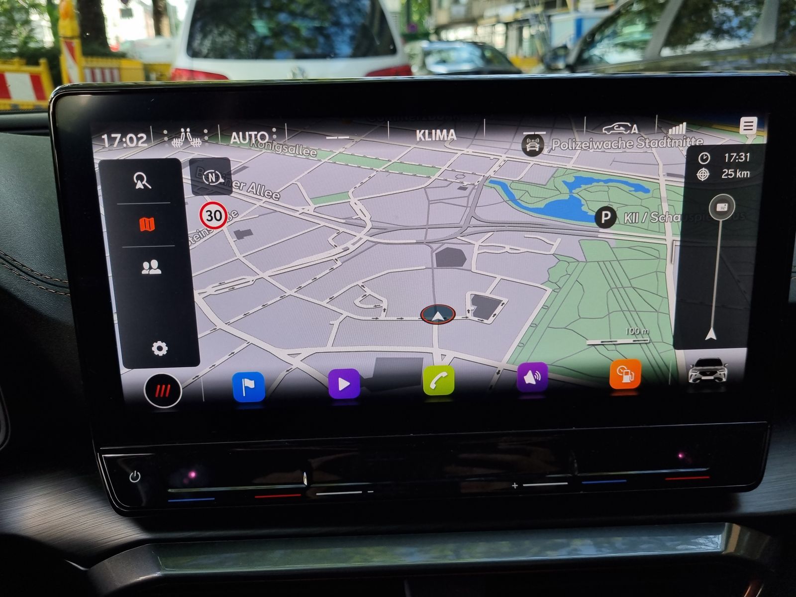 Da ich eigentlich immer mit Carplay navigiere, habe ich erst jetzt zum Spass mal beim Warten das Cupra Navi ausprobiert. Leider bin ich schon kläglich daran gescheitert, eine der drei vorgeschlagenen Routen auf dem Bildschirm auszuwählen.