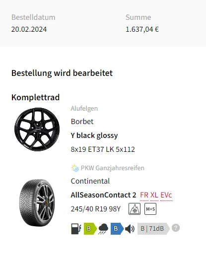 Mein Gedanke war, dass ich Winterfelgen und Reifen eh hätte kaufen müssen, von daher hab ich nun anstatt der Winterreifen die Ganzjahresreifen bestellt.
