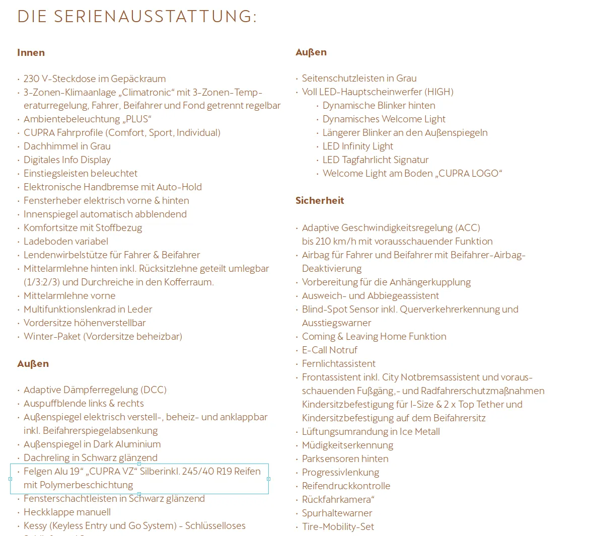 Bis 11/2024 Formentor VZ E-Hybrid - Ab 11/2024 Cupra Born 170 Kw / 60 kWh