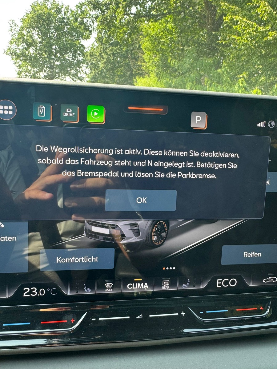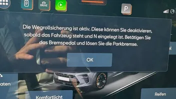 - Meldung zum deaktivieren der Wegrollsicherung im Display bestätigen (dazu muss auch das Bremspedal noch betätigt sein und ggf. die Handbremse gelöst werden, sofern sich diese aktiviert hat)