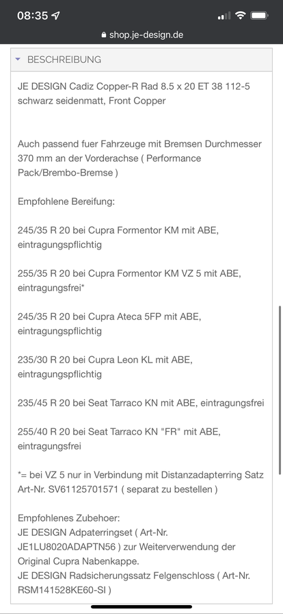 Ca.2.350€ ,hab 245x35x20“ mit ABE,laut je-Design ab Größe 255 muss man zum TÜV