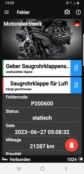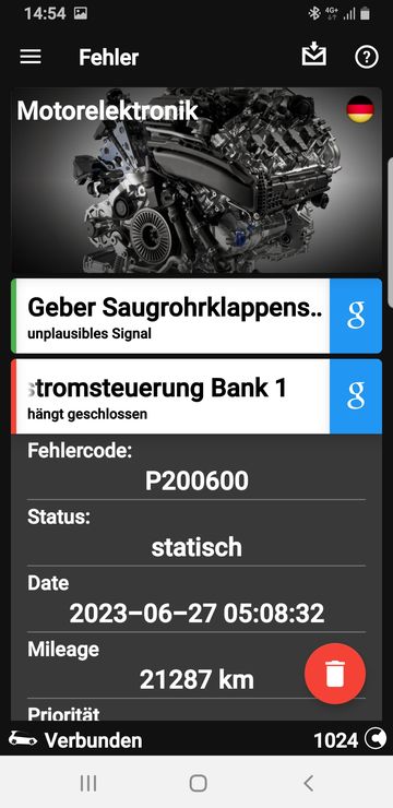 Jetzt habe ich einen Fehler der zum zweiten Mal aufgetreten ist. Beim ersten Mal dachte ich er spinnt wieder. Ich habe den Fehler wieder gelöscht und heute auf dem Weg zur Arbeit habe ich mal kurz Beschleunigt und die Motorkontrollleuchte ging wieder an. Fehler ausgelesen und das kam dabei heraus.