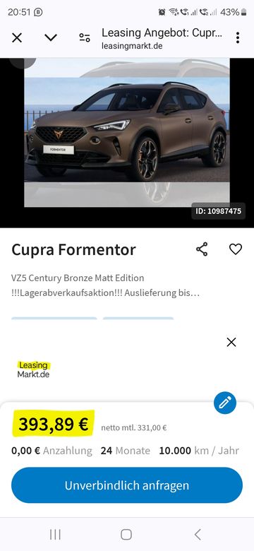 Ebbe im Leasingraten Kanal, oder will keiner mehr den Cupra Formentor. :cry: