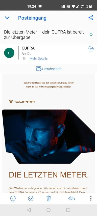 E-Mail: Dein CUPRA ist bereit zur Übergabe: am 08.09.2022