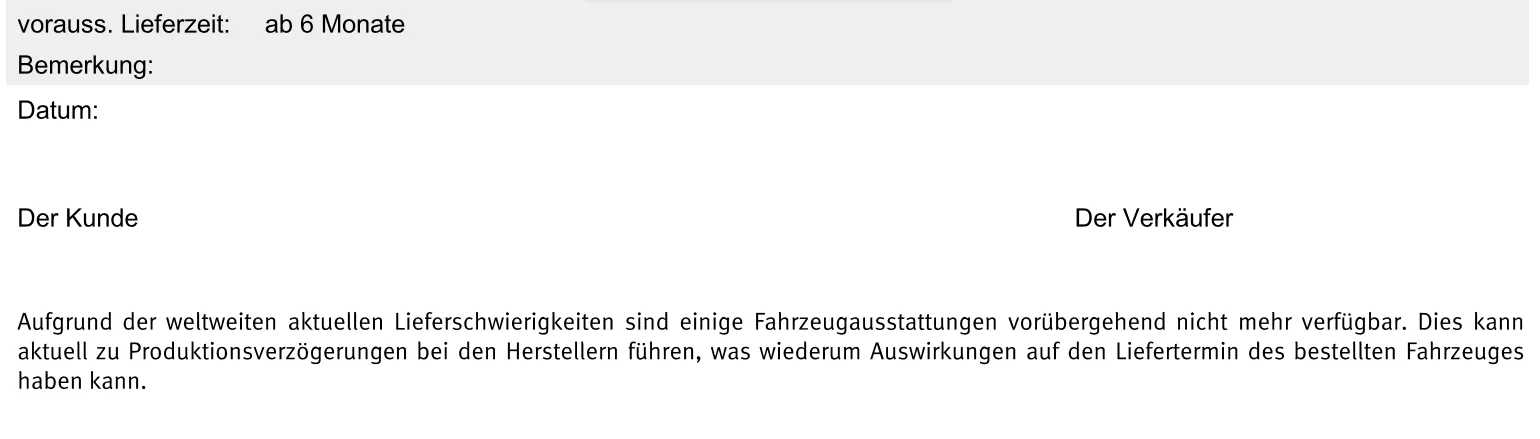 Ich hab heute eine spannende Aussage von meinem Autohaus bekommen über die ich nicht mal mehr lachen kann. Ich solle mich doch glücklich schätzen, dass ich mein Auto so früh (Mai 2021) bestellt habe und ich dadurch die Chance habe, das Auto vielleicht dieses Jahr noch zu erhalten und damit auch die Förderung.