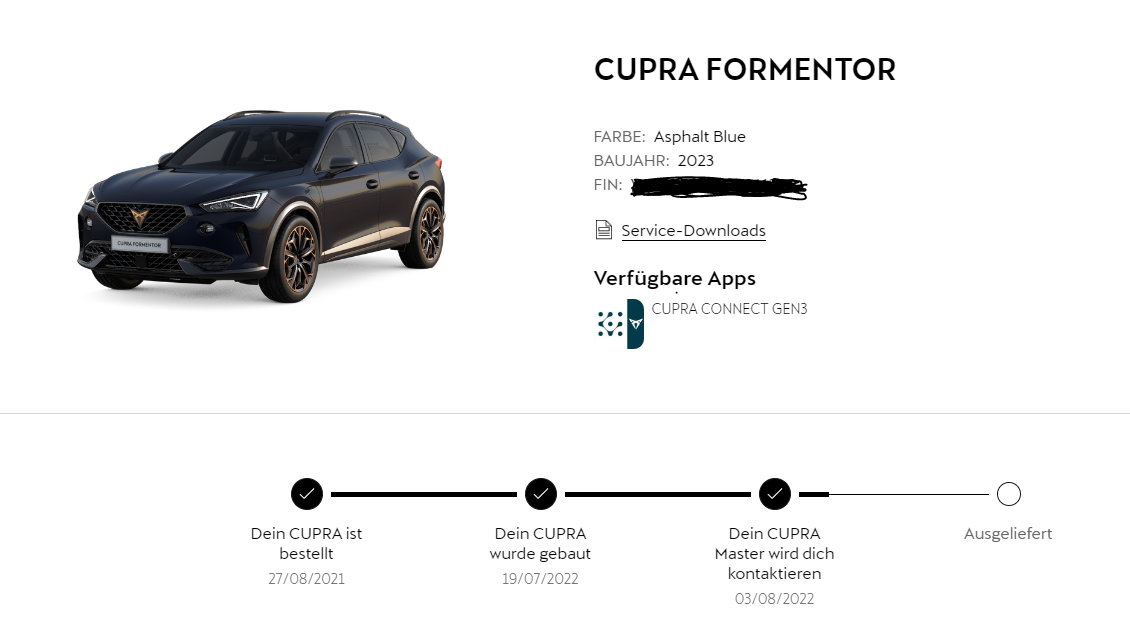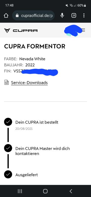 - 07.01.2022 Abends: Tracking auf "gebaut" und "Cupra Master wird dich kontaktieren" gesprungen.
