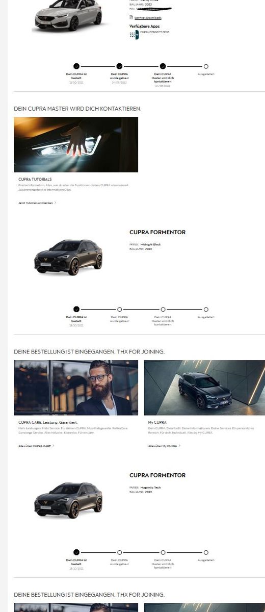 Stand 29.07.22: Dein Cupra wurde gebaut (laut Tracking, laut NADIN "Ankunft Hafen")
