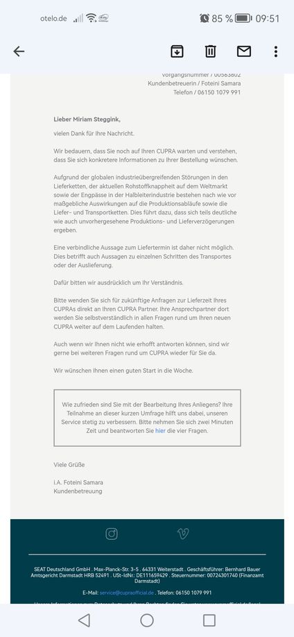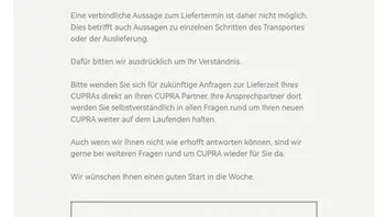 Hab jetzt mal dumm angefragt, ob die Mail von Cupra „gebaut“ was zu sagen hat. Bin gespannt…