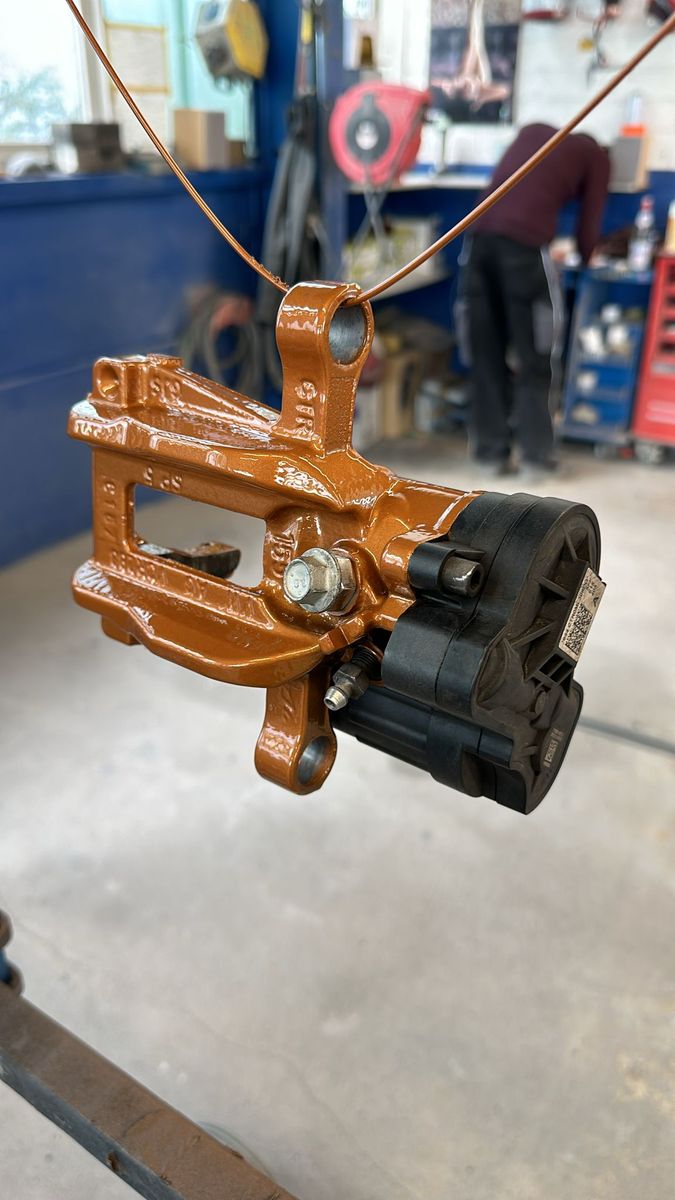 Da die Bremse ein mal runter war, habe ich direkt die Bremszangen hinten in Kupfer lackieren lassen, sowie meine Grail Endrohre in glänzend schwarz.