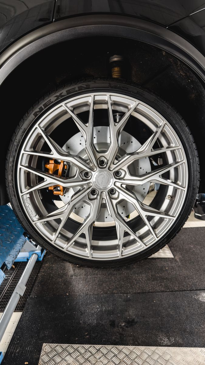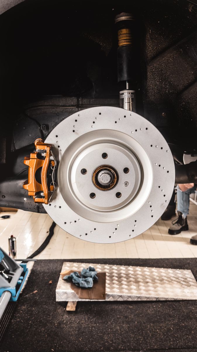 Wir haben auf der Hinterachse ein Bremsscheiben Upgrade (von 310mm auf 356mm gelocht) samt neuen Belägen verbaut.