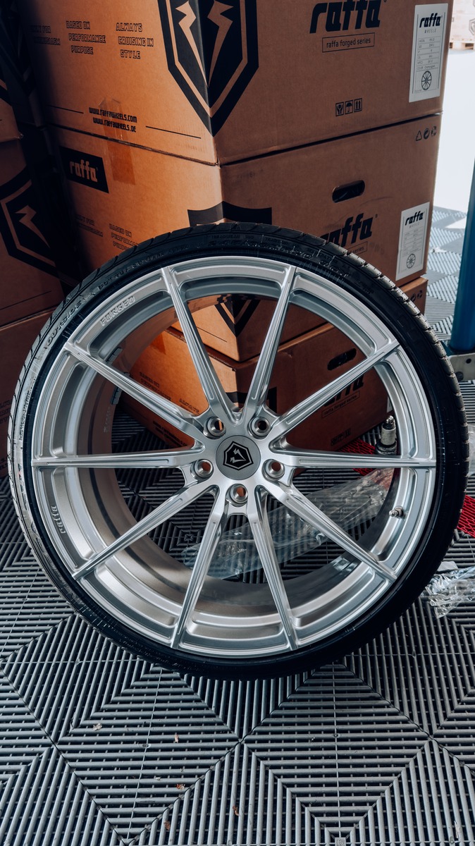 So, seit Freitag sind erst mal die neuen Raffa Forged RFS-03 High Gloss Silver in 9x20 ET30 drauf.
